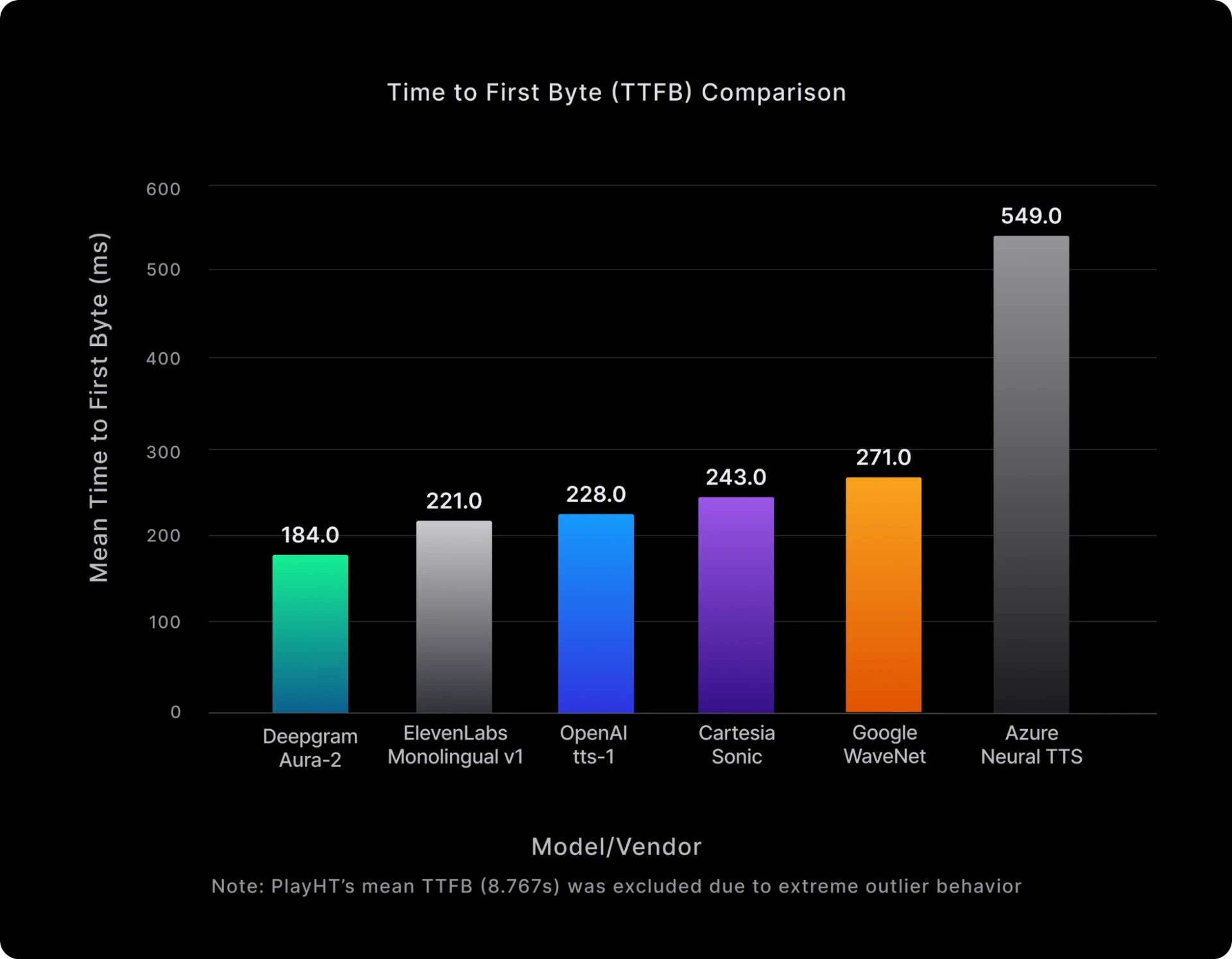 Deepgram Aura-2: 184 ms vs ElevenLabs: 221 ms