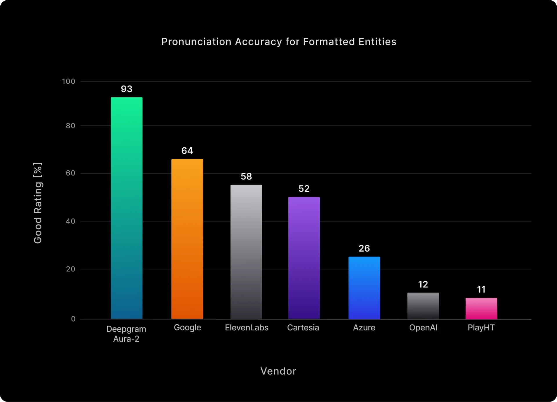 In blinded evaluations, users preferred Deepgram for enterprise voice applications.