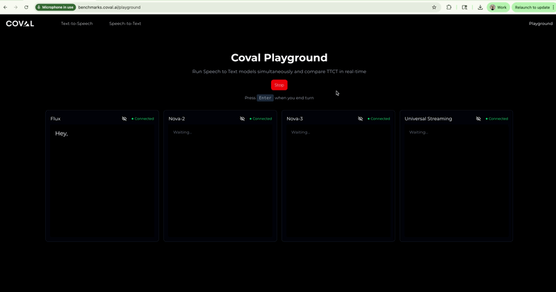 Want to see Flux in action against other providers? Head to Coval's interactive playground and test it live.