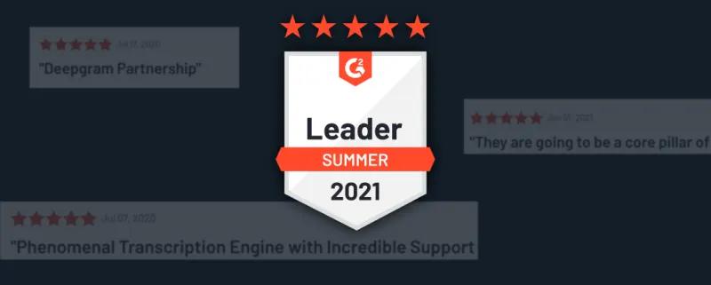 Deepgram has been recognized as one of the best solutions for Voice Recognition based on its high levels of customer satisfaction and likeliness to recommend from real users on G2, a leading software solution review platform.