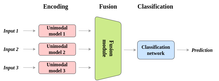 Intermediate Fusion: Integrating features at some hidden layer within the model, allowing for interaction between modalities during processing.